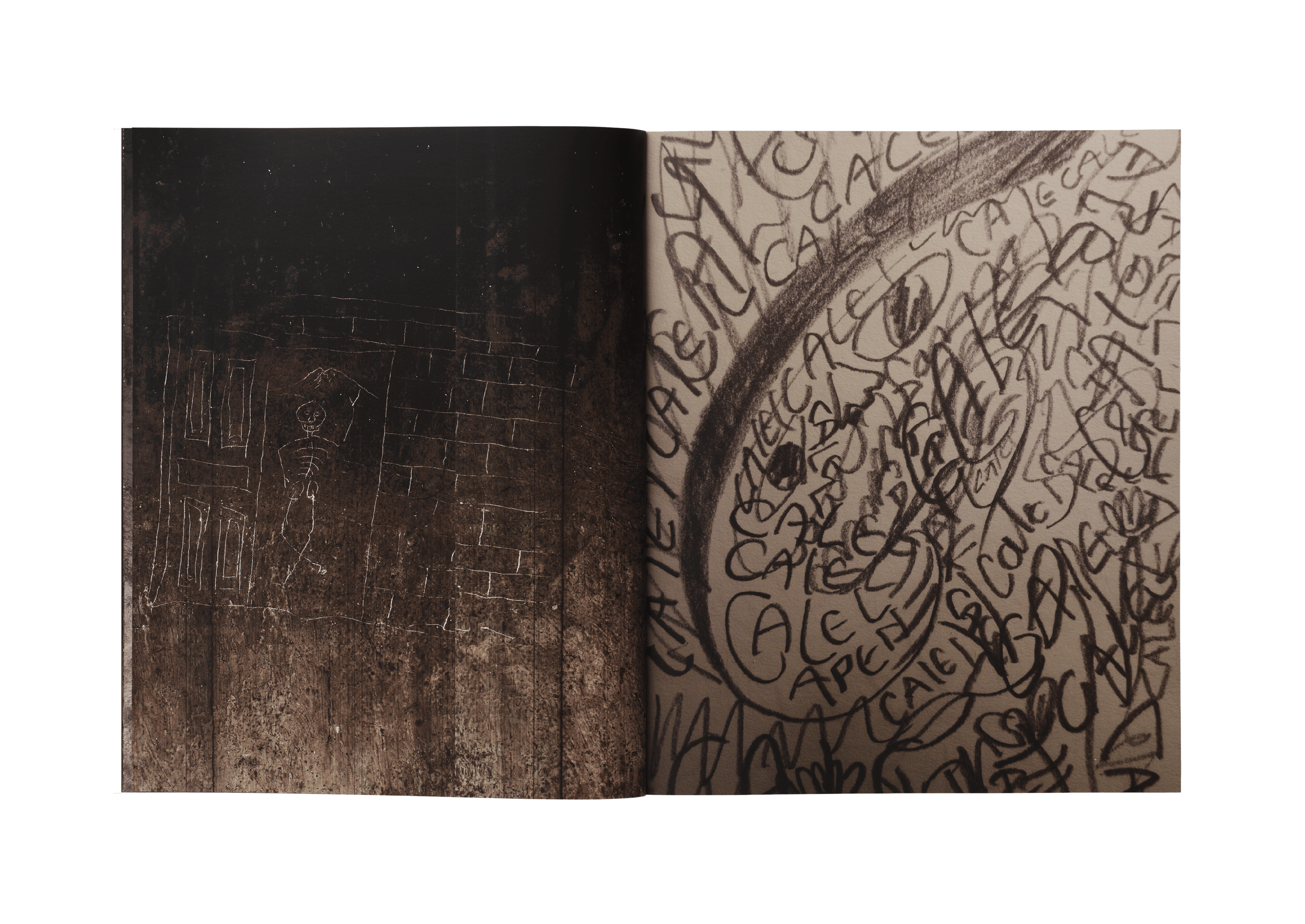 Calel records these dreams by etching them onto the smoke-stained walls of the home, which bear the sediment of their hearth, transforming the transient into a living archive. These drawings are transposed onto Pina’s pages, interspersed with Kaqchikel poetry, family Polaroid photographs and notes – documenting the subtle textures that feed the artist’s and his family’s dreams. As a registry of the most fragile of images, Calel’s exhibition is an invitation to use our sense of touch to see the fleetingness and potency of dreams, poetry and intimacy.